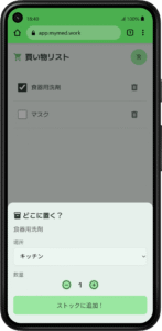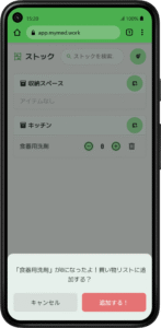 逆にストックが0になったら買い物リストに追加するか聞かれる。